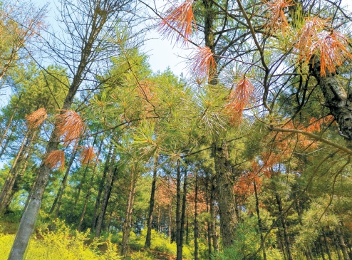 △ 受松树线虫病影响的松树呈现出“红绿相间”的颜色。