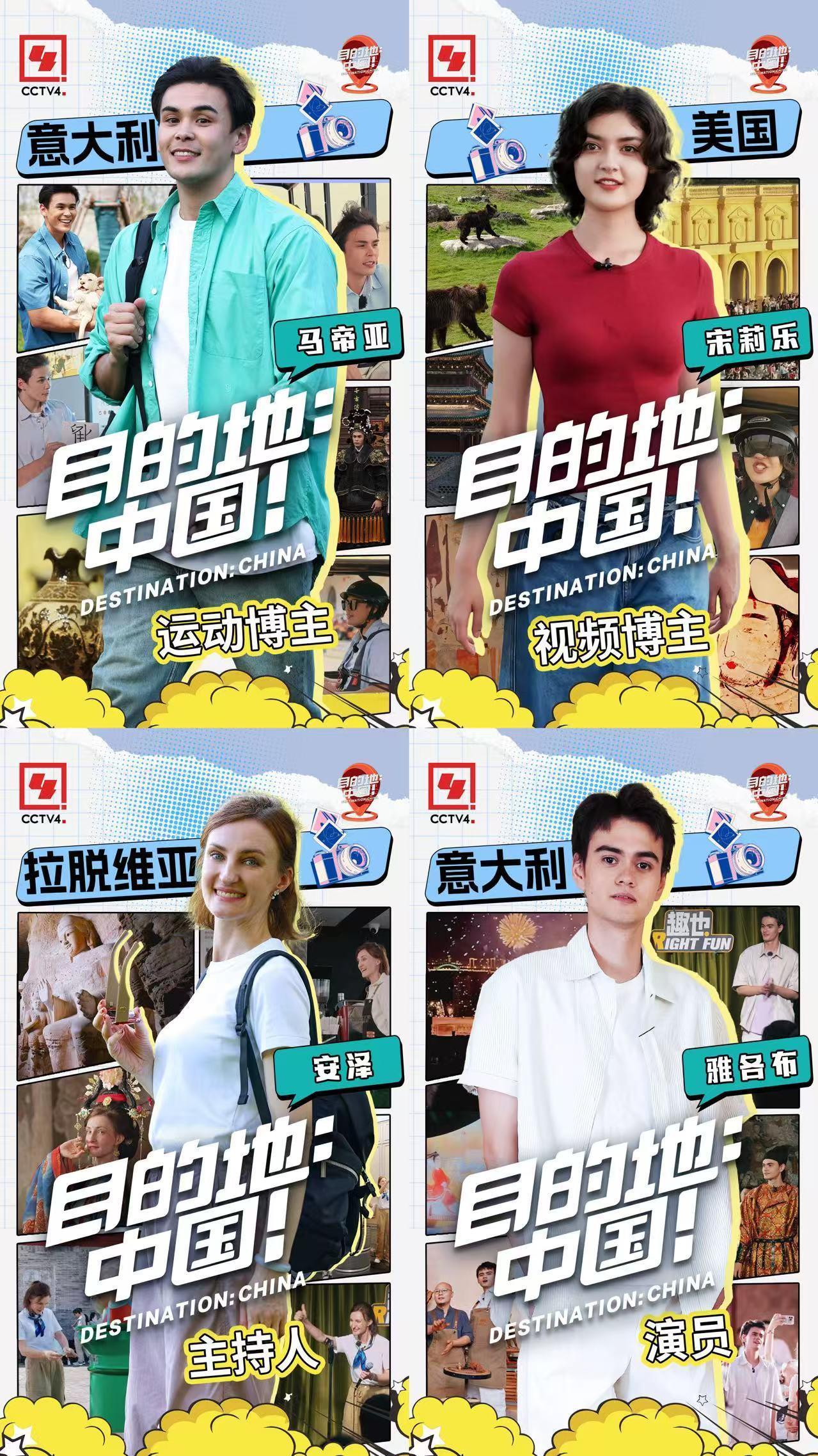“目的地是中国!” “免签外国先锋包括意大利演员雅各布、美国视频博主宋莉尔、拉脱维亚主持人安泽和意大利体育明星马蒂亚。他们来到中国,开启探索之旅,以异国视角向全球观众展示一个真实、立体、多元的中国。