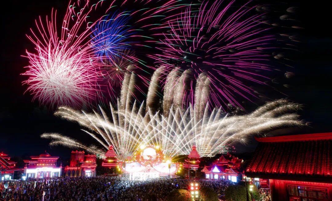 荆州奇幻东方神画《中都花宴》迎宾,“百花巡游”、“千灯月宴”、“京城火庆”焰火表演将双节热闹非凡。