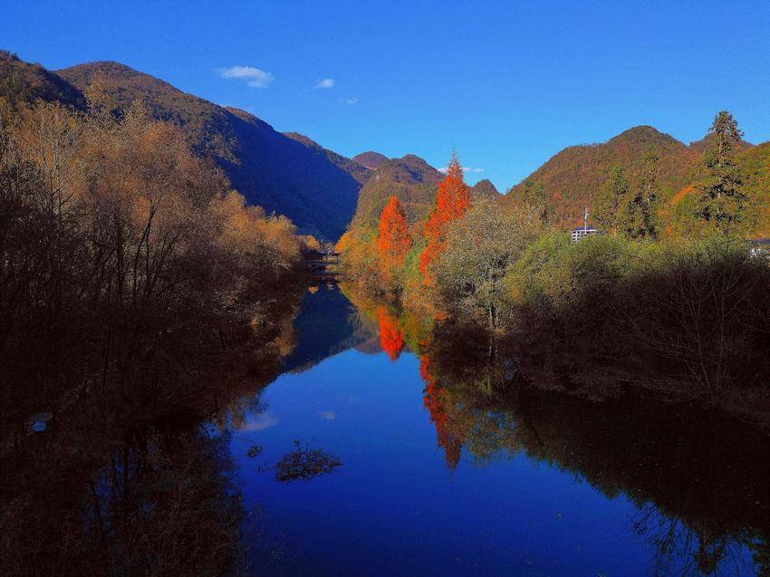 董家河以其独特的坡谷地貌,并不急于告别。贺冬默默地占据了国土的三分之一,留下了黄叶红树林、绿水青山一起度过了下雪前的几天。